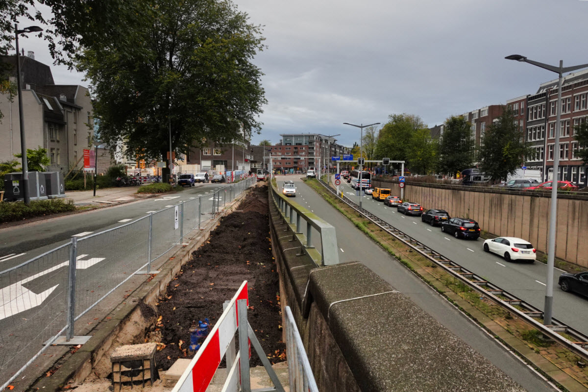 De aannemer begon vorige week met de vergroening van de Nieuwe Foeliestraat. Er komen groenvakken aan de kant van de IJ-tunnel, deze werkzaamheden zijn eind van deze week afgerond.