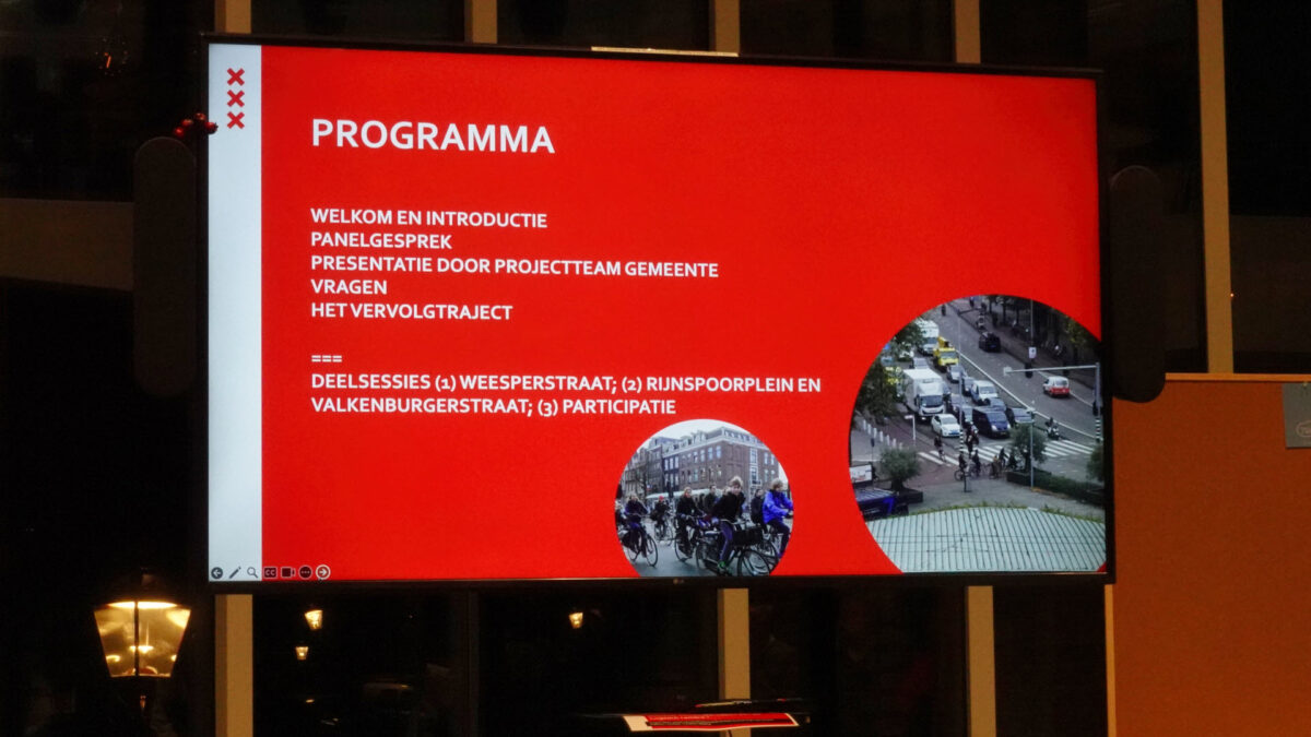 Tijdens de avond werden ook cijfers gedeeld. De aantallen in de Weesperstraat zijn minder dan in de Wibautstraat, maar veel meer dan op de Stadhouderskade (2×1). Daarom kan nu niet de hele Weesperstraat worden versmald.